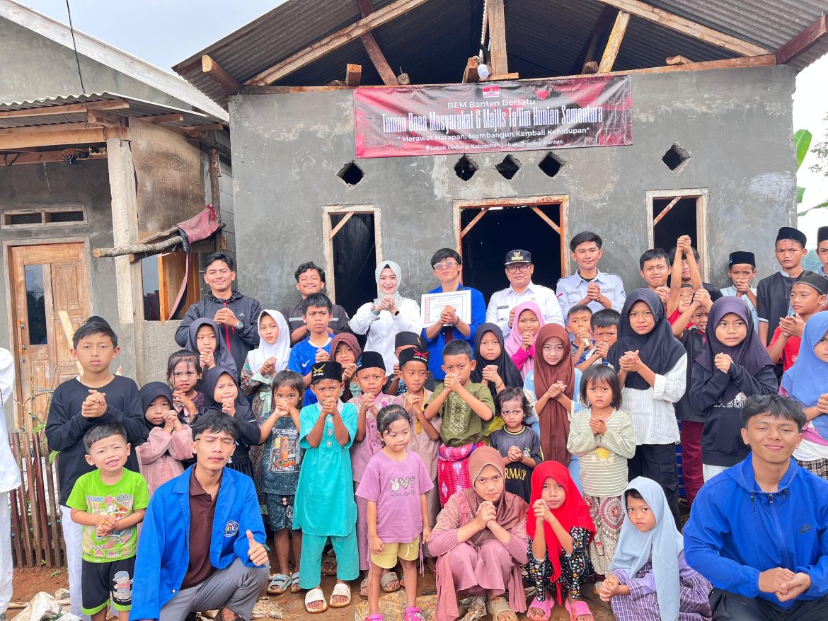 Kegiatan pengabdian masyarakat yang dilakukan beberapa hari oleh Badan Eksekutip Mahasiswa (BEM) Banten Bersatu bersama BEM USBR resmi ditutup dengan dengan agenda penyerahan buku bacaan, penyaluran Al-Qur’an kepada warga serta meresmikan Taman baca dan Renovasi Masjid di wilayah sekitar Lebak Gedong, Kabupaten Lebak, Banten, Rabu 18 Febuari 2026.