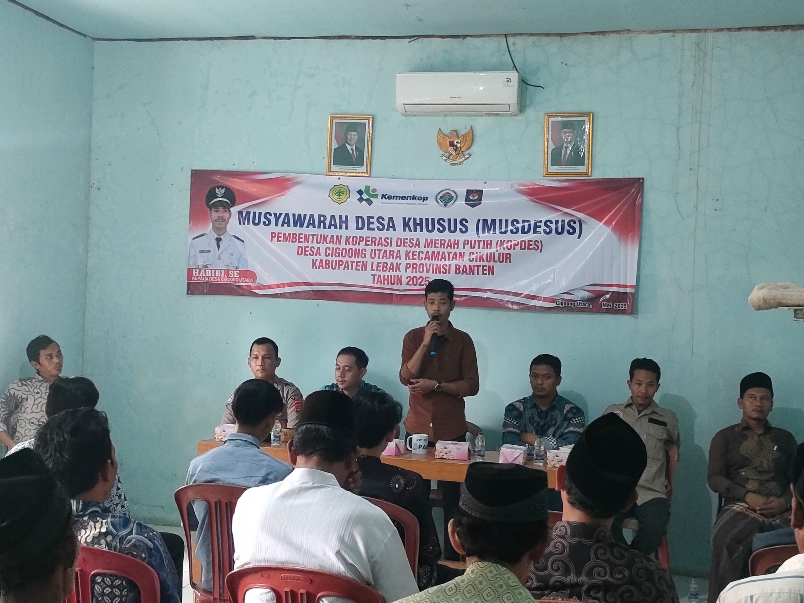 Musdesus dibuka langsung oleh Kepala Desa Cigoong Utara, Habibi, S.E yang dalam sambutannya menyampaikan bahwa koperasi ini diharapkan dapat menjadi motor penggerak perekonomian masyarakat desa. “Koperasi Desa Merah Putih akan menjadi wadah kolektif bagi masyarakat dalam mengelola usaha pangan, klinik desa, serta potensi ekonomi lainnya yang berbasis pada kearifan lokal dan gotong royong,” ujar beliau.