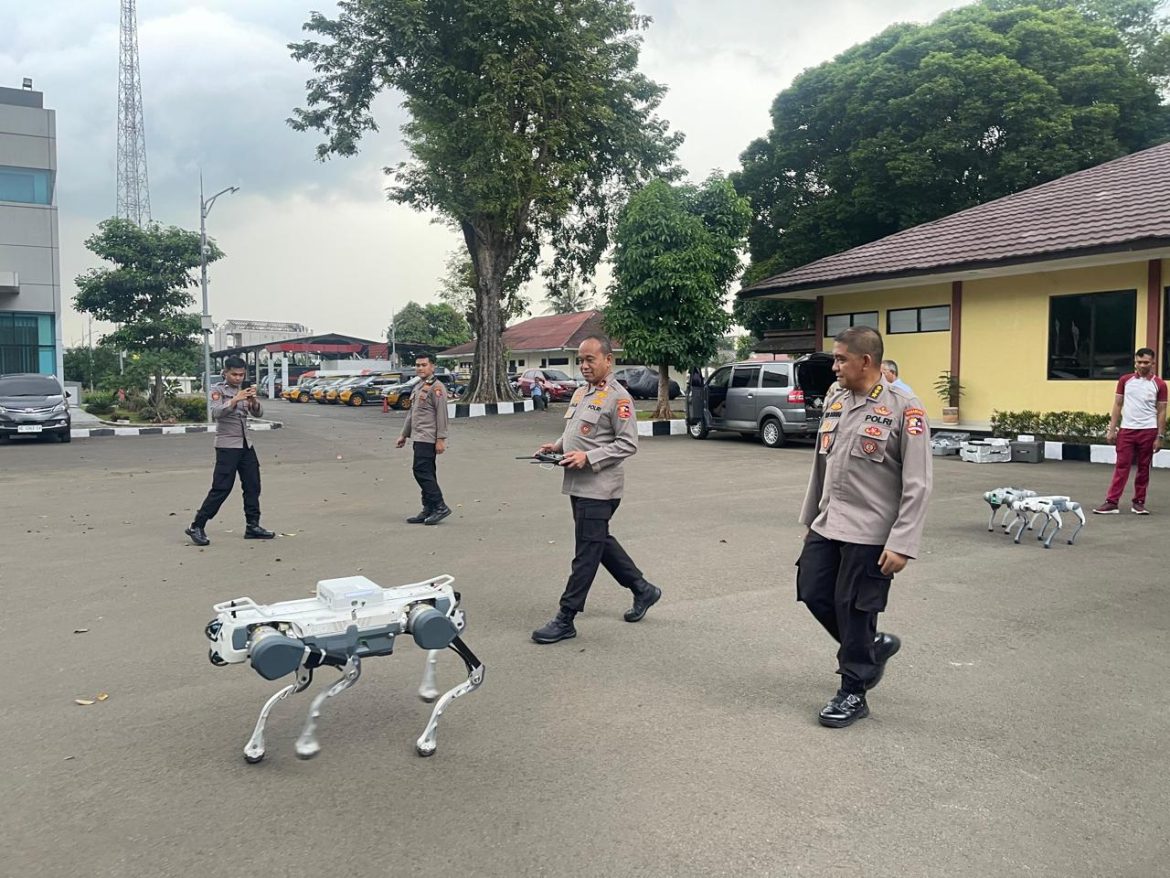 Jakarta – Direktur Samapta Korsabhara Baharkam Polri menerima pengenalan robot dari PT Ezra Robotics, Pengenalan terhadap 5 Unit Robotic Berkaki 4 langsung di uji coba di lapangan Ditsamapta Korsabhara Baharkam Polri yang diikuti 30 personil Korsabhara, Selasa 17 Juni 2025.
