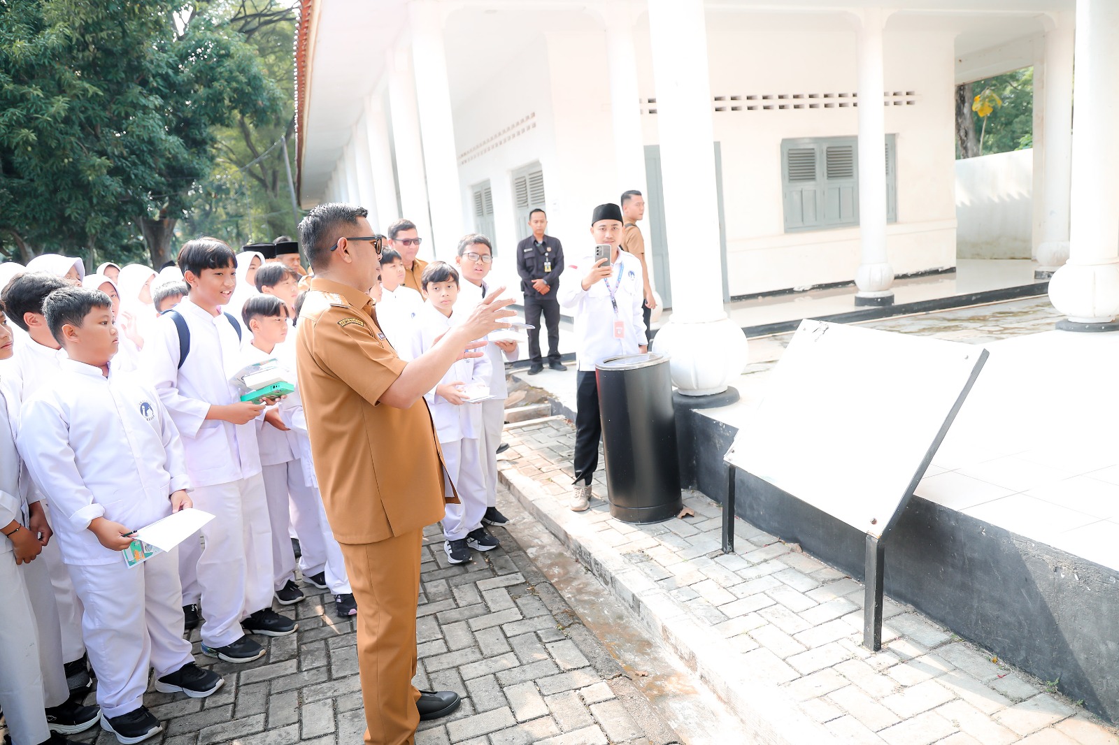“Gedung ini merupakan cagar budaya yang dibangun pada tahun 1829 ketika masih dalam pemerintahan Hindia Belanda. Tidak boleh diubah, makanya kita terus rawat agar tetap terjaga dengan baik,” kata Andra Soni kepada anak-anak.
