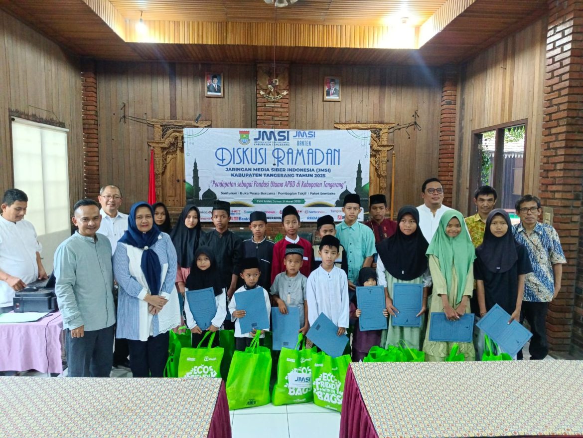 Tangerang -Jaringan Media Siber Indonesia (JMSI) Kabupaten Tangerang menggelar diskusi publik bertajuk “Pembangunan sebagai Pondasi Utama APBD di Kabupaten Tangerang” di Ardes Cafe, Tigaraksa, Kabupaten Tangerang, pada Jumat, 21 Maret 2025. Acara yang bertepatan dengan momen Ramadan 1446 Hijriah ini juga diisi dengan kegiatan santunan.