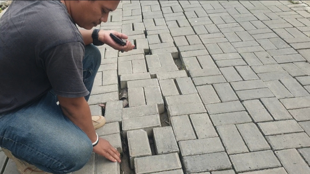 Dilapangan juga menemukan bahwa susunan paving blok terlihat renggang dan tidak rata, sehingga berpotensi membahayakan pengguna jalan, terutama pengendara roda dua yang melintas setiap hari.