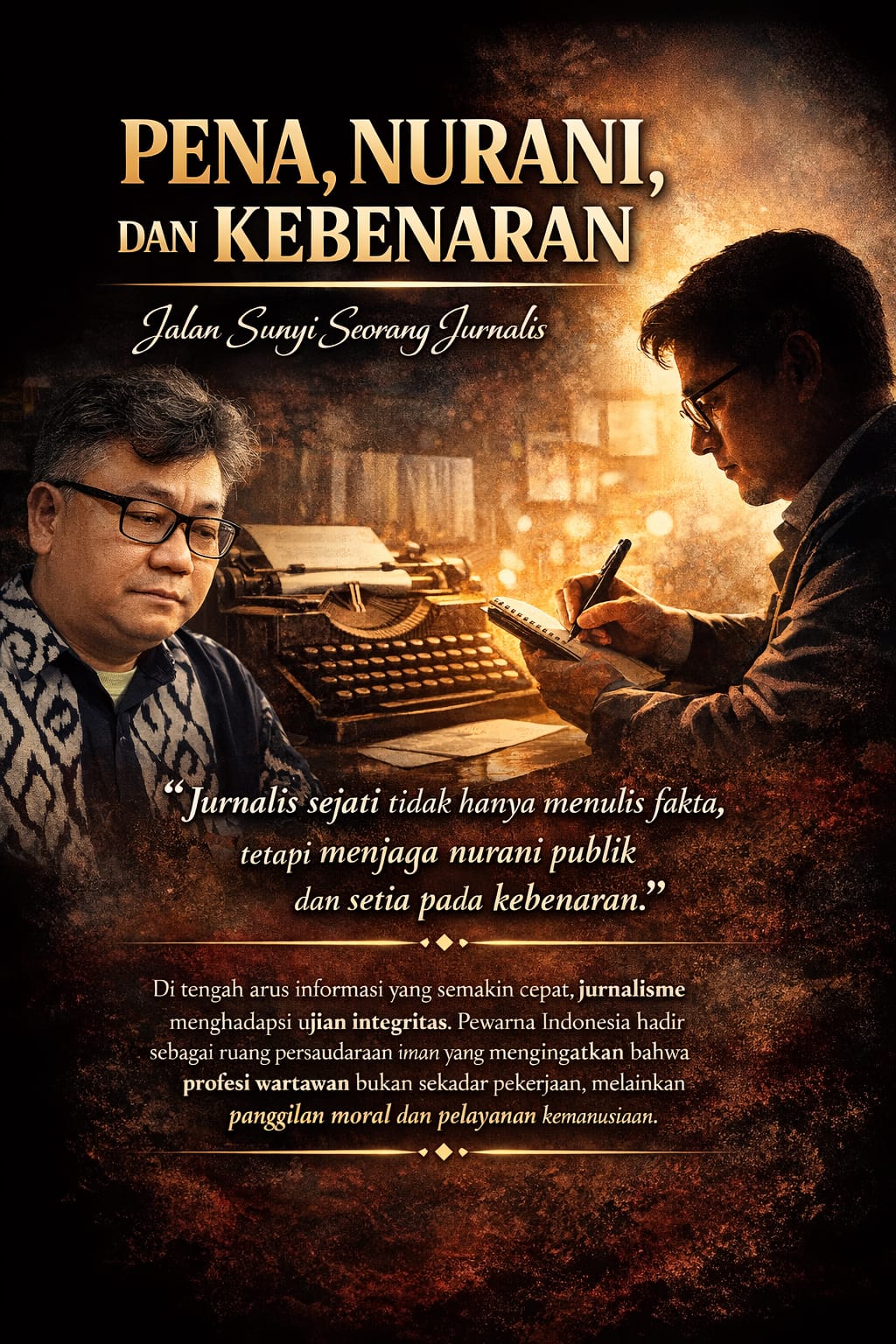 Pena, nurani, dan kebenaran adalah tiga pilar yang tidak dapat dipisahkan dalam perjalanan seorang jurnalis. Tanpa nurani, pena kehilangan arah. Tanpa kebenaran, jurnalisme kehilangan makna.