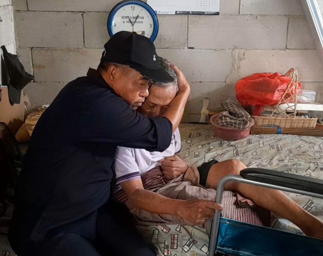 Mwdi Juanda Politisi Nasdem yang juga anggota DPRD Lebak Sekertaria Komisi III saat menggengam erat Nenek Jompo yang terkena Lumpuh