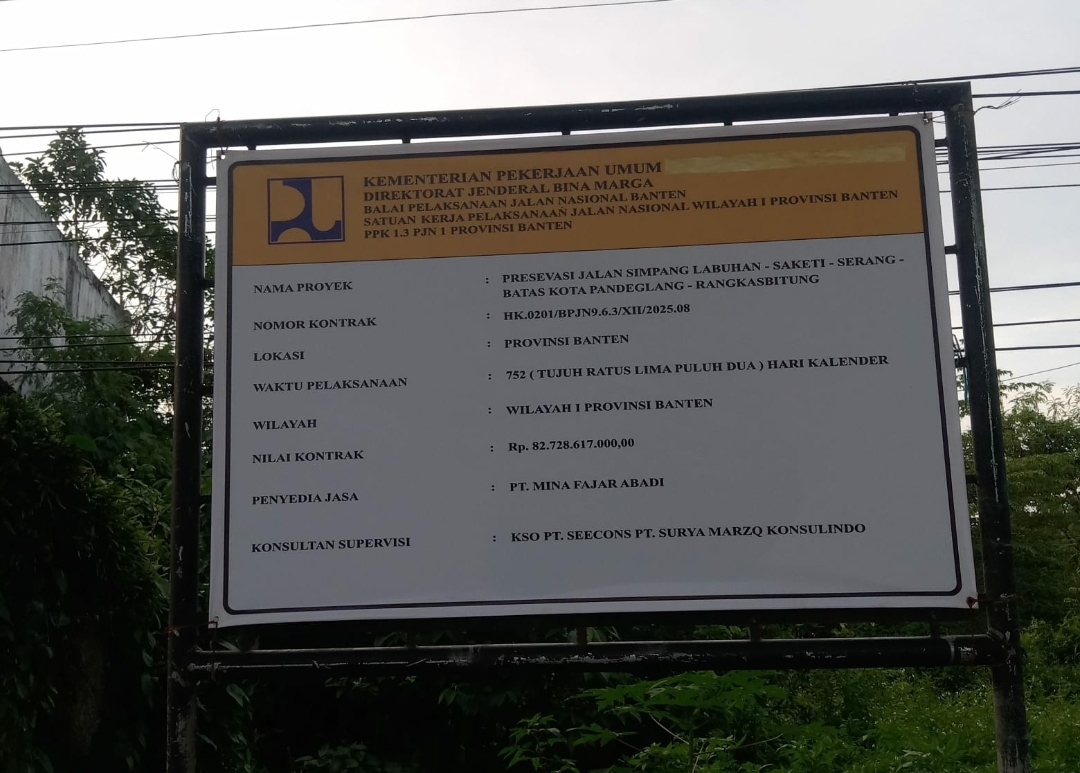 Paket pekerjaan Preservasi Jalan Simpang – Labuan – Saketi – Serang (Batas Pandeglang – Rangkasbitung) yang mencakup kegiatan Preservasi Jalan, Rekonstruksi Jalan, serta Preservasi Jembatan, dengan sumber pendanaan APBN Tahun Anggaran 2026, menuai sorotan tajam dari kelompok Gerakan Aksi Moral Mahasiswa (GAMMA) Provinsi Banten.