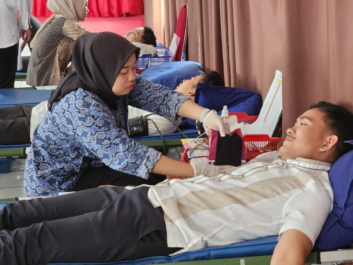 Kegiatan donor darah dilaksanakan di Aula Lapas Kelas III Rangkasbitung, sejumlah pegawaipun terlihat antusias mendonorkan darahnya.