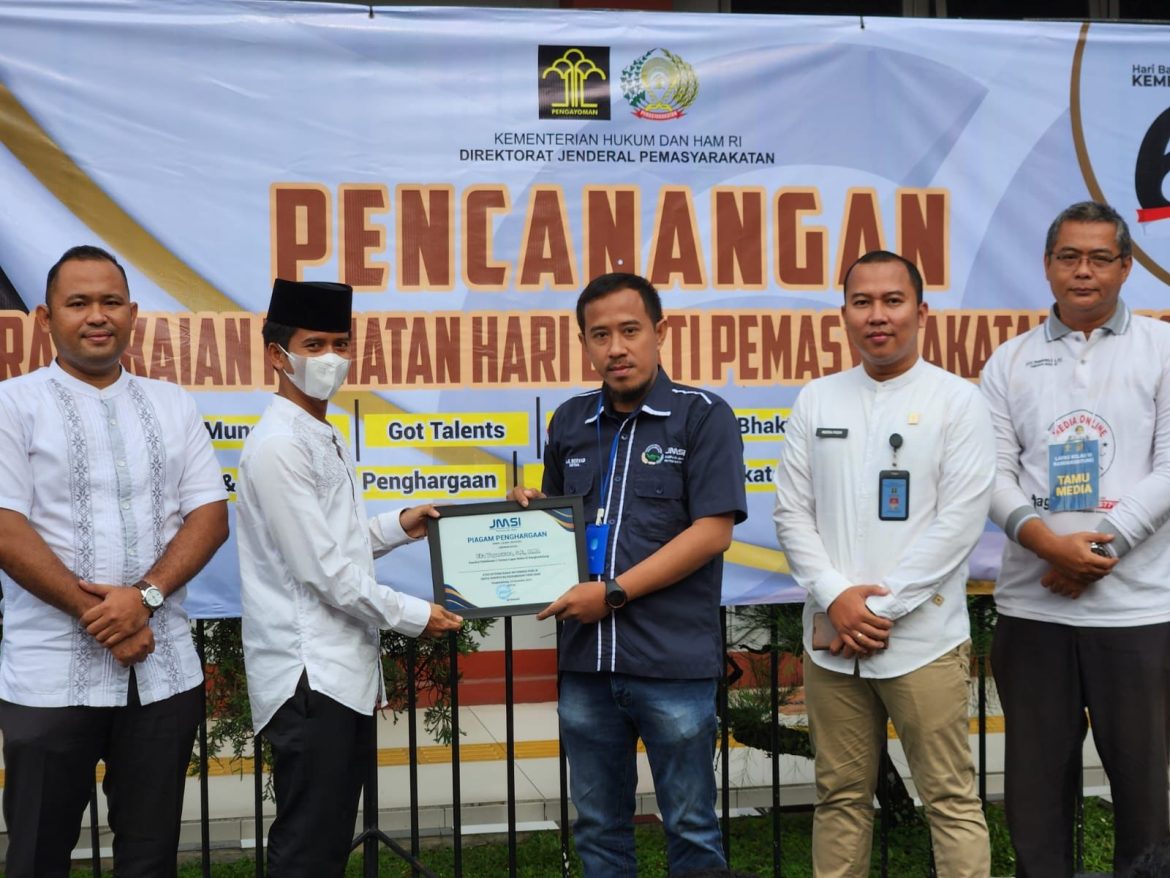 Piagam penghargaan kali ini diberikan oleh Pimpinan redaksi media Jaguar News 77, Ketua Jaringan Media Siber Indonesia (JMSI) Kab. Lebak dan Ketua Media Online Indonesia (MOI) Kab. Lebak atas keterbukaan informasi dan sinegritas yang baik antara media dan Lapas Kelas III Rangkasbitung.