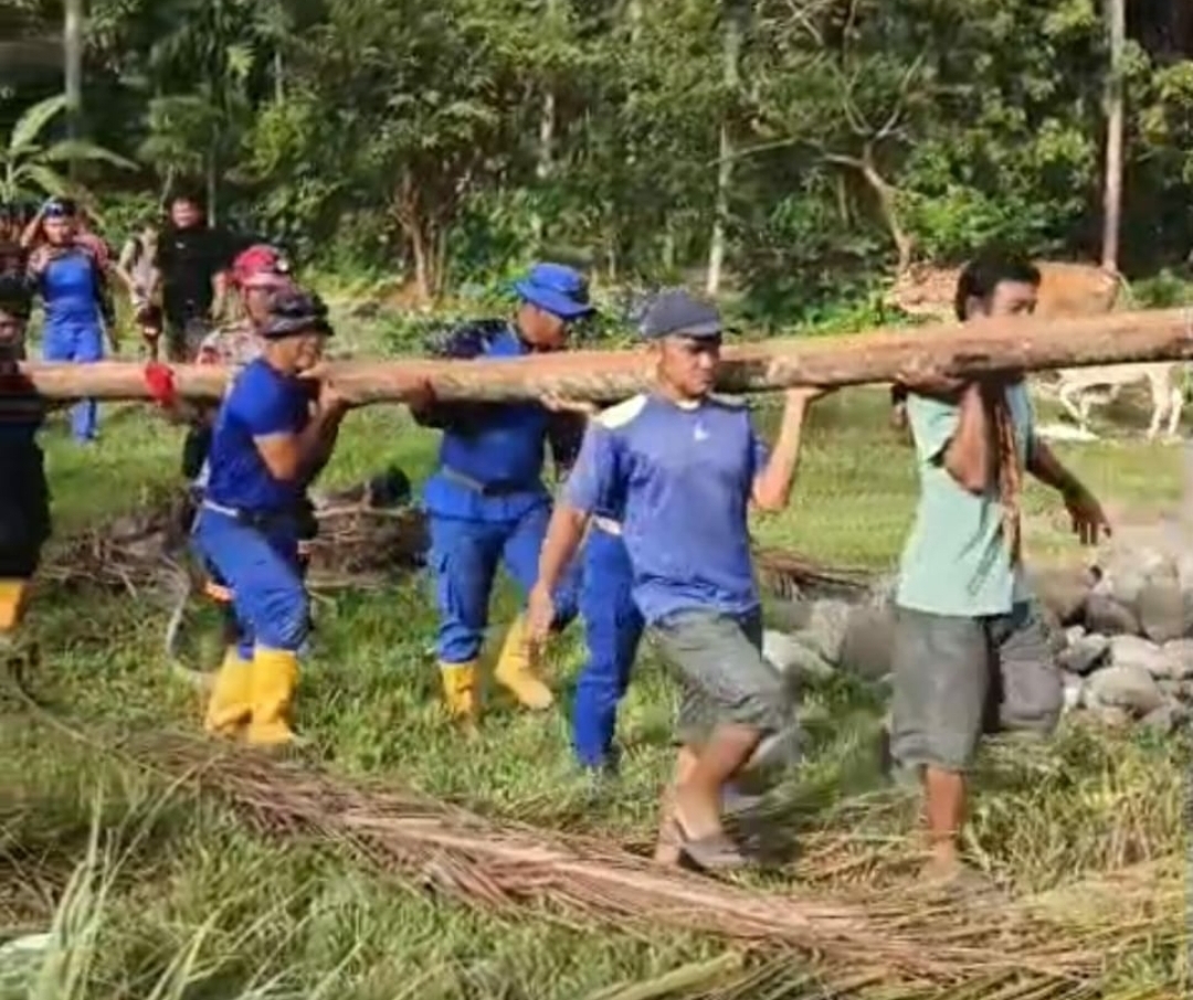 Tim SAR Korpolairud melaksanakan kegiatan gotong royong pembuatan jembatan sementara di Korong Maranci, Nagari Seulayat, Kecamatan Ulakan Tapakis, Kabupaten Padang Pariaman. Kegiatan ini dilakukan bersama masyarakat setempat sebagai upaya membantu pemulihan akses penghubung antar desa yang sempat terputus.